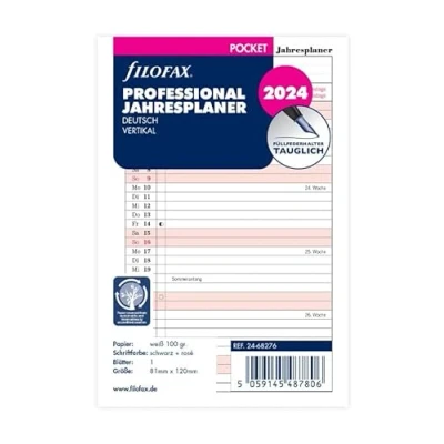 Year planner, German, series Professional in the size pocket as a Leporello for folding. Our tip: We recommend reinforcement rings to stabilise the holes