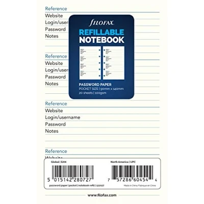 Filofax Pocket Refillable Notebook Refill Password Paper White