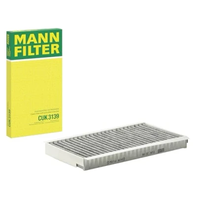 MANN-FILTER Cabin Filter CUK 3139, two cabin filters required per replacement, Dimensions (mm): H = 31; A = 322; B = 170, Premium Filter in Original Quality MANN-FILTER quality activated carbon cabin filters offer nearly 100 percent protection against particles such as pollen, diesel soot and tire abrasion, plus protect from harmful gases and unpleasant odors High-efficiency processed activated carbon protects against harmful gases such as ozone, nitrogen oxide or sulfur dioxide and effectively eliminates unpleasant odors for the entire maintenance duration Find the compatible filter, select the make, model, variant and submodel in the search engine at the top of the page or refer to your car's documents The products meet the requirements of the EU Reach regulation regarding health and environmental protection in the processes of development, manufacture, use and disposal of waste