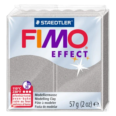 AmazonFimo - 8020-81 FIMO EFFECT modelling clay, to bake, metallic silver baked in 30 minutes at 110 degrees, mixable with FIMO SOFT and FIMO CLASSIC, compliant with the European toy standard, Normal block striated in 8 portions, for models with effects Metal, dimensions: (L) 55 x (D) 15 x (H) 55 mm. 56 g (8020-81)