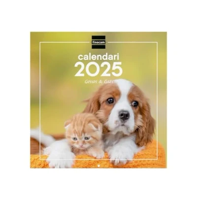 Finocam Calendar Wall Pictures 30x30 to Write 2025 Month View January December (12 months) Dogs and Cats Catalan