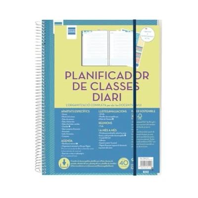 Duration: for a school year from Monday to Friday, excluding holidays: 199 days Interior: 1 day page without date. Large daily writing space for planning up to 8 lessons and/or daily school hours. Contents: Personal data, free content sheets for pasting important center documents, schedules, class plans, meeting dates, interview dates, activity and departure dates, checklist, innovation ideas and projects, anniversaries, monthly planning, 24 sheets of lists/evaluations (for 40 students), 7 meeting sheets, links, trainings and contacts, set of themed stickers and two transparent covers for DIN A4 documents. Material: 80 g/m2 Polypropylene lids Single metallic spiral FSC paper See more details of this item in the product description. Finocam items are designed to optimise your personal organization, making your life more practical, comfortable and at the same time more beautiful. By buying Finocam you buy quality products.
