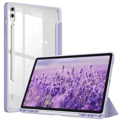 FINTIE Hybrid Slim Case for Samsung Galaxy Tab S10+ Plus/ S9 FE+ Plus/Galaxy S9+ Plus 12.4 with S Pen Holder, Shockproof Cover Clear Transparent Back Shell, Auto Wake/Sleep, Lilac Purple