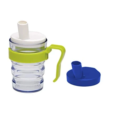 2 different attachments: for liquids and for porridge Easy handling thanks to the included handle holder, especially suitable for people with limited grip 200ml cup with marking, allows accurate dosage of medications and liquids Microwave safe, food safe, not dishwasher safe Practical design, total weight: 92 g
