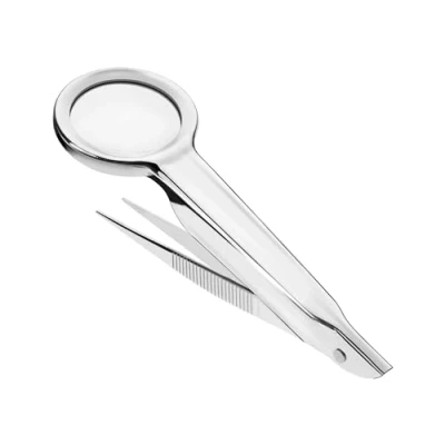 Sturdy plastic lens with 4.5x magnification reduces the strain on the eyes and helps to grasp fine objects Ribbed gripping surface ensures good grip and precise work Easier handling when grasping and removing fine hairs and splinters Practical combination of magnifying glass and tweezers allows for a one-hand use Measures: width 3 cm, heigth 1 cm, length 9.5 cm, diameter of lens 2.3 cm/ Weight 14 g