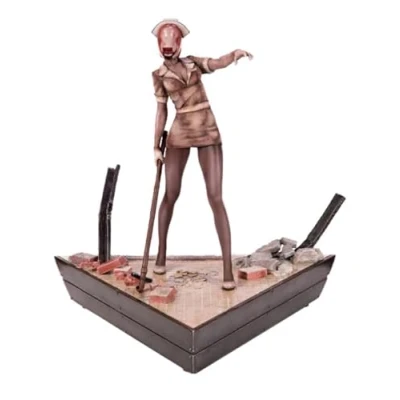 First 4 Figures is proud to present resin collectible - Bubble Head Nurse from the video game, SILENT HILL 2. The Bubble Head Nurses are grotesque monsters that players will encounter in the game as well as a horror video game icon! This statue captures a Bubble Head Nurse holding (dragging) a metal pipe with her other arm outstretched as if to reach for you. Their obscured faces and their bloodied, torn clothing have been replicated to stay true to the horror. Premium Painted Resin Statue of Bubble Head Nurse Triangle base inspired by Brookhaven Hospital in the video game Limited Edition Numbering & Authentication Card, Manufacturer: First4Figures