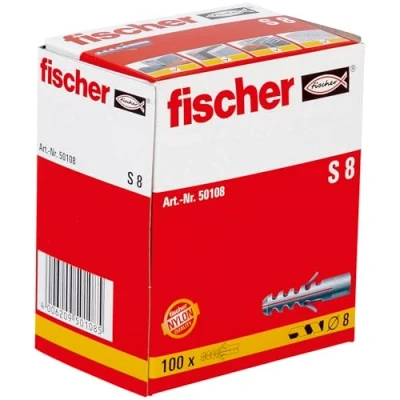 fischer Expansion Plug S 8, 100 Pieces, 50108