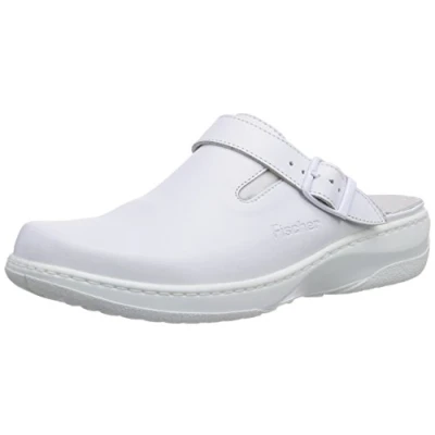 Stylish clog design: these women's clogs from Fischer impress with their timeless design made of soft nappa leather in a classic look. The neutral colour in white provides an elegant look that shines even without varnish Comfortable to wear: thanks to the removable leather insole, these clogs offer the best wearing comfort - whether at home or on the go. The low heel with a height of 3 cm ensures a comfortable posture High-quality materials: the clogs are made of high-quality leather and equipped with a synthetic sole. The insole is made of leather, which ensures a comfortable fit PERFECT FOR SPECIAL OCCASIONS Whether it's a wedding, birthday or New Year, these clogs are the perfect addition to any festive outfit. Thanks to the plain design and pull-on closure, they are easy and comfortable to wear Non-slip sole: the synthetic sole of the clogs is non-slip, which provides extra safety. The shoes are available in white and go with any outfit WIDE SIZE SELECTION: the clogs are available in size 7 UK, offering so many women the opportunity to wear these comfortable and stylish shoes