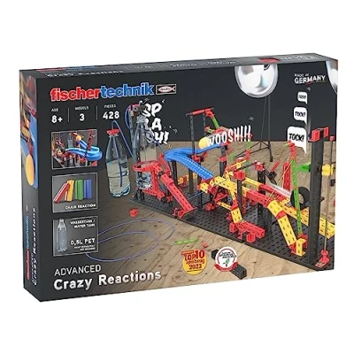 Exciting action: with this action-packed construction toy, your child can build three different chain reaction models that can be extended with everyday items and thus awaken your child's experimental joy Fascinating discoveries: the functions of the pulley, lever and gear are learned through exciting surprise effects when playing - for endless fun right after the start shot Perfect combination: for even more fun and action, the children's toy can be ideally combined with Funny Reactions, the LED set, the Creative Boxes and all building kits of the Dynamic line Play & learn: the experiment box gives your child knowledge about mechanical, physical and static basics in a playful way and at the same time promotes their creativity – according to our motto "grasp technology playfully" Box contents: 1 x Crazy Reactions ADVANCED, educational toy for children aged 8 and up, kit with 444 pieces from fischertechnik - made in Germany, Manufacturer: fischertechnik