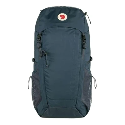 The Fjällräven Abisko Hike 35 is a lightweight and flexible backpack for low weight trekking and cabin-to-cabin trips. The Abisko Hike is made from 100% recycled nylon. It has an adjustable back length system with ventilating air mesh on the back panel, shoulder straps and hip belt and a lightweight frame that keeps weight down. Its slim profile and fit make it perfect for fast daytrips, while also being spacious and stable enough to carry the gear you need for a couple nights away. On top of that, it is practical for travelling as well; when it is empty it can be folded almost flat and packed into a larger bag. The main compartment is top-loading and an extra zipper on the right side gives quick access to contents. There is a security pocket inside the main compartment. The top flap can be raised and has two pockets. Zippered front pocket and an expandable side pocket with strap adjustments that lets you stow a drinking bottle close to hand. In addition, there are attachments for trekking poles or an ice axe. The backpack is also hydration system compatible (not included). A rain cover is included for persistent rain.Weight: 1400 gVolume: 35LDimensions: 60x28x20 cm