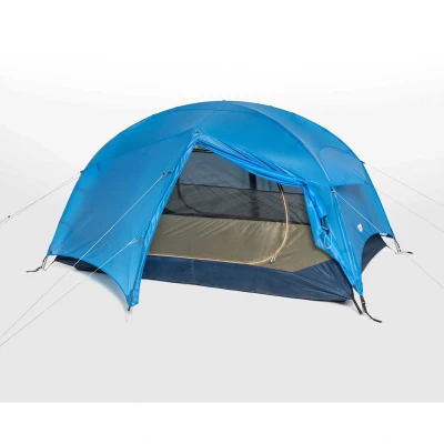 It is not often that the Swedish tent specialist Fjällräven introduces a new tent. The all-new Fjällräven Abisko Friluft 2 is a lightweight three season tent for two with superior ventilation that is optimized for use in warm-weather conditions. It features a throw-over flysheet. On really warm, dry nights, you can remove the fly and use only the inner tent to sleep beneath the stars. The cross-over pole construction provides comfortable sitting height with generous headroom. Two large entrances with extra-fine mosquito netting allow you to admire the view from your sleeping bag without the intrusion of insects. Thanks to the two vestibules you can keep your gear separate.