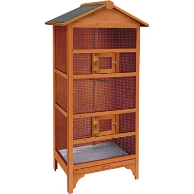 A spacious aviary reminiscent of a beautiful dresser large wooden birdhouse offers plenty of space for pet Genuine solid wood With a second protected side part and rainproof roof structure