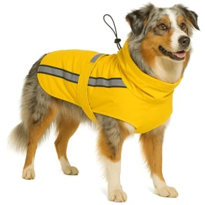 Flamingo Ciro Yellow Dog Raincoat 60 cm Washable with Reflective Strips Adjustable Elastic for Back Paws A: B: 62 C : 68 75