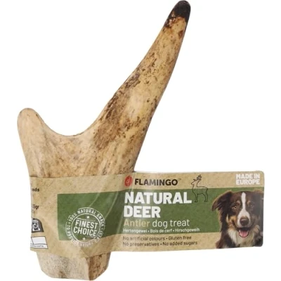 Hard deer antlers with marrow inside Perfect for enthusiastic chewers Does not chip and helps reduce dental plaque thanks to chewing