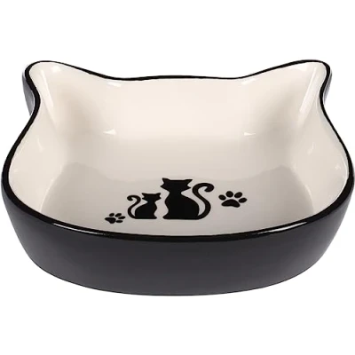 Flamingo Nona Ceramic Cat Food and Water Bowl 250 ml Black White