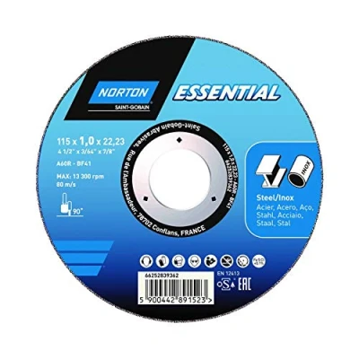Flat cutting disc Angle Grinder Norton Essential METAL INOX 115x1x22.2