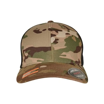Stylish unisex trucker cap with typical mesh insert and stiffened front in licensed MultiCam camouflage pattern Perfect fit thanks to the patented Flexfit system, which adapts to the head