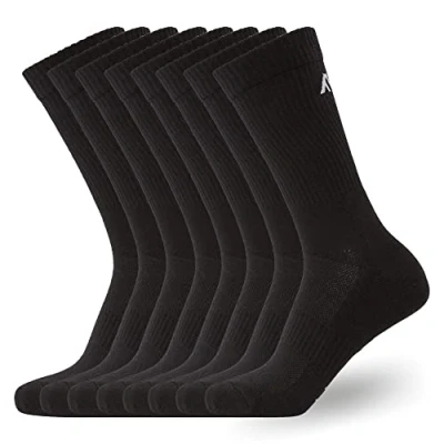 VERSATILE: These sports socks combine practical features with ultimate versatility for an all-round athletic sock that's great for running, gyming, sports and even casual wear; available in a range of colours, choose from black or white sports socks. CUSHIONED: The thick cushioned heel of our men’s and women’s sports socks make them shock-absorbing to minimise discomfort upon impact; feature a long, high-rise tab designed to protect your heel from rubbing against your shoe and causing blisters. ODOUR-RESISTANT: Breathable, quick-drying fabric efficiently wicks away moisture from the skin to keep your feet feeling cool and dry during intense activity; feature mesh fabric on top of the foot for added ventilation to aid all-day freshness. SUPER-SOFT: Running socks crafted from a rich cotton blend of materials for a super soft-touch feel against event the most sensitive skin; provides a sleek feel in shoes that minimises rubbing and discomfort when on the move. STRETCH-FIT: Added stretch and a premium blend of fabrics make for an ergonomic fit that moves with you; featuring a gently elasticated, ribbed cuff to keep the sports socks in place and prevent them sliding down.