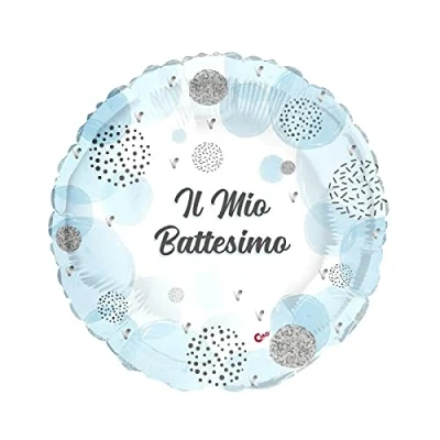 Matching line for "My Christening" party light blue Foil balloon mylar round round (23cm, 9'') The balloon can be inflated with air or helium Occasions: Baptism, Party, Theme Party, Anniversary, Celebration, Celebration, Arrangement, Events, Manufacturer: Ciao