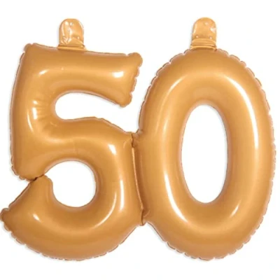 Inflatable decoration in the shape of the number 50. Contents: 1 inflatable and size is 45x35 cm. The inflatable material is plastic and the color is gold. The number has a handy loop on the top and this way you can easily hang this inflatable number on the ceiling or on the wall. Folat has a wide range of interesting party products, all created in accordance with European safety standards.We deliver smiles., Manufacturer: Folat