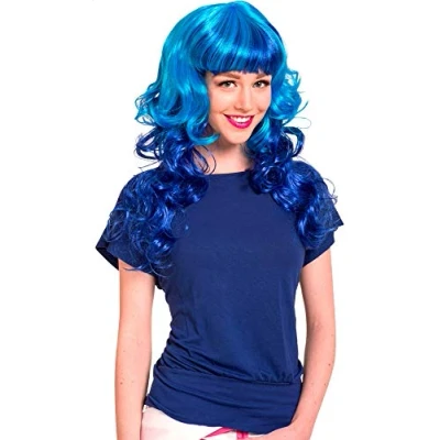 Bright blue wig with curls. Contents: 1 x wig. Wear this wig at carnival, theme party and festival. The wig is suitable for adults, one size fits all. The item is made of polyester and is flame retardant., Manufacturer: Folat