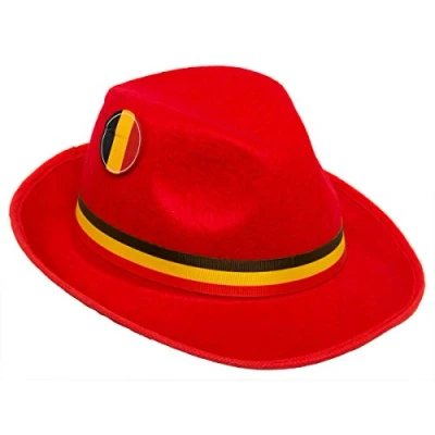 Hat belgium black-yellow-red. Contents: 1 Hat. Colour: Red. Hat size: 59 cm. The article is made of felt. You can use this article for the following party occasion(s): Football events and Theme parties., Manufacturer: Folat