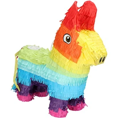 Pinata Donkey Rainbow Birthday. Contents: 1 piñata and is multicoloured. The pinata is 35 x 39 cm and is made of cardboard. You can use this article for the following party occasion(s): Birthday, Children's party. Folat has a wide range of interesting party products and all created in accordance with European safety standards.We deliver smiles., Manufacturer: Folat
