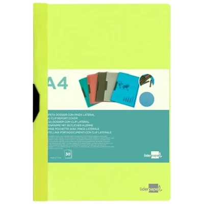Folder liderpapel dossier side clip polypropylene din a4 yellow fluo opaque 30 sheets slide clip