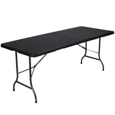 Folding Table, Rattan Look, 180 x 75 74 cm, Black