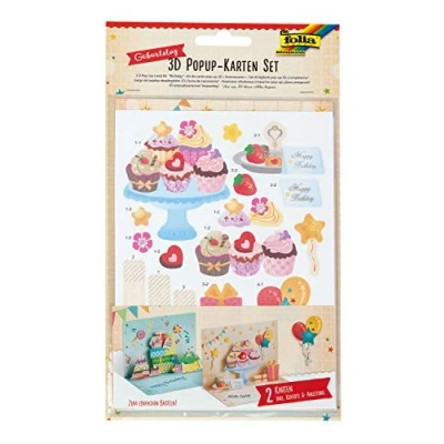 folia 11601 Pop Birthday Craft Set for 2 Greeting Cards Including Envelopes with Punched Pieces and 3D Adhesive Pads