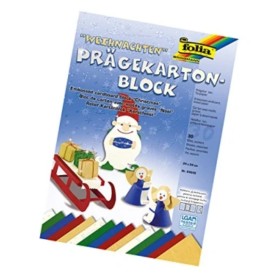 Embossed box Christmas Contains 1 pad of 15 sheets embossed box and 15 leaves of coloured paper In 5 different colours Dimensions: 24 x 34 cm LGA-tested, Manufacturer: Max Bringmann
