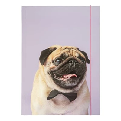 folia 69002 Portfolio Folder A3 Basic Puggy Love Made of Sturdy Cardboard with Elastic Strap