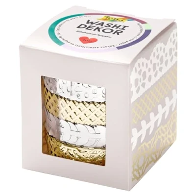 AmazonPre-cut rice paper lace border Sticks to many different surfaces such as paper, walls, metal, glass, etc. The tape can be removed and reused without leaving a trace 2 rolls 5 m x 10 mm and 2 rolls 5 m x 15 mm with hot foil finish in hot foil design gold and silver Ideal for embellishing and decorating, scrapbooking, card making and much more.