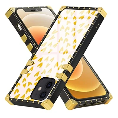 Specially designed for iPhone 12/12 Pro. ✅ Cute square design with golden heart on the back makes your iPhone 12/12 Pro more attractive and fashionable. A slightly raised lip protects the screen, fingerprint scan, camera and flash from scratches and provides complete protection for your iPhone 12/12 Pro. Precise cut-outs for easy access to all ports, buttons, cameras, speakers and microphones. Unique hybrid design with your favourite modern back with non-slip, flexible TPU.