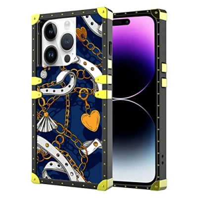 Specially designed for iPhone 14 Pro Max. ✅ Cute square design with golden chain on the back makes your iPhone 14 Pro Max more attractive and fashionable. A slightly raised lip protects the screen, fingerprint scan, camera and flash from scratches and provides complete body protection for your iPhone 14 Pro Max. Precise cut-outs for easy access to all ports, buttons, cameras, speakers and microphones. Unique hybrid design with your favourite modern back with non-slip, flexible TPU.