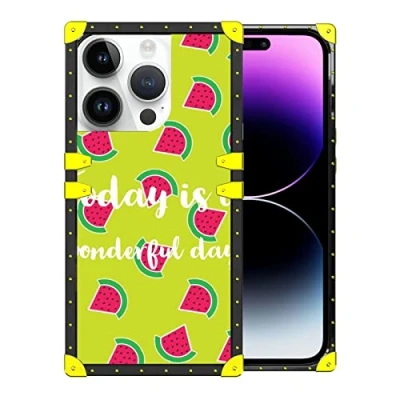 for iPhone 14 Pro Square Edge Phone Case Watermelons_Love Flexible Premium Anti Scratch Protective