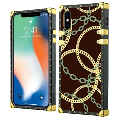 Specially designed for iPhone X/Xs. ✅ Cute square design with dark green chain on the back makes your iPhone X/XS more attractive and fashionable. A slightly raised lip protects the screen, fingerprint, camera and flash from scratches and provides full body protection for your iPhone X/Xs. Precise cut-outs for easy access to all ports, buttons, cameras, speakers and microphones. Unique hybrid design with your favourite modern back with non-slip, flexible TPU.
