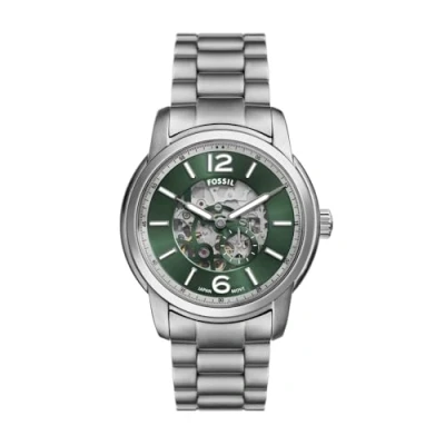 43mm case, 22mm band width, mineral crystal, Automatic movement with 2-hand sub second analog display, imported. Round stainless steel case, with a green dial. Silver, stainless steel bracelet. Water resistant up to 50m: Wearable while swimming in shallow water.