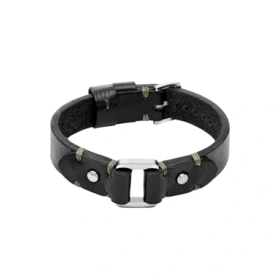 Fossil Machine Men's Black Leather Bracelet, JF04946040