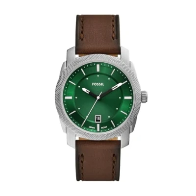 42mm case, 22mm band width, mineral crystal, Quartz movement with 3-hand date analog display, imported Round stainless steel case, with a green dial Brown, leather band Water resistant up to 50m: Wearable while swimming in shallow water Warranty type:Manufacturer; 2 Years Warranty