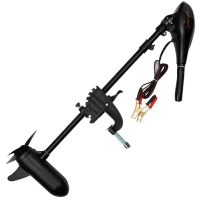 AmazonElectric motor from Fox for carp fishing Thrust force: 45 lb, shaft length: 81 cm, weight: 9 kg Positionally adjustable control heads, three-wing drive screw, reinforced screw heads for attachment Aluminium motor housing Quick release shaft with many different angle adjustments