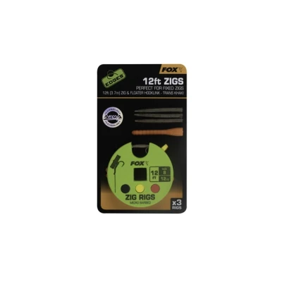 Fox Edges Zig Rig - Choice of different lengths - Number per pack: 3 pieces - Break strength: 12lb (5.44kg) Zig & Floater hooklink - Perfectly knotted Zig Rigs - Ideal for catching carp in the higher water layers - Camo Anti Tangle Sleeve - Zig Aligna – one Red, one Yellow and one Black - 14mm Zig Foam – one Red, one Yellow and one Black - Free Zig Aligna Loading tool - Use in conjunction with a Zig Rig Lead Clip. - Try different colours and depths until you start to catch. If anything is growing in popularity in recent years it is fishing with a Zig Rig. The Fox Edges Zig Rig is a ready made zig rig with different coloured baits and line aligners. So you can experiment to your heart’s content with combinations that work best on your fishing waters. All three rigs come with a free Zig Aligna Loading tool so you will always have different (lengths) of zig rigs ready to deploy and change when needed!