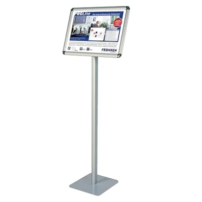 Silver anodised aluminium frame Clamping system for easy and quick change of contents PVC sheet with UV-filter to protect contents Total height 120 cm