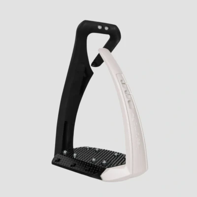 Safety, Comfort & Performance Endorsed by the world's top riders, the Soft'Up Pro+ stirrup stands out with its innovative single-branch design, offering an unmatched combination of safety, comfort, and performance. Single Branch Technology The single-branch spring steel design of the Soft'Up Pro+ stirrups acts as a suspension system, reducing the effort exerted on each stirrup by threefold. This decreases pressure on the rider's joints and alleviates the horse's back. This advanced design, unique to Freejump's single-branch stirrups, enhances not only comfort but also overall durability and performance. Optimal Safety The outer branch of the stirrup is made of Elastollan®, a flexible material that deforms and allows the branch to open, facilitating foot release in case of a fall. Shock Absorption & Super Grip Freejump Shock Absorption The Soft'Up Pro+ stirrup features Freejump Shock Absorption technology thanks to its single-branch design. This guarantees optimum shock absorption and exceptional comfort. Stability & Durability Equipped with an extra-wide grip, the Soft'Up Pro+ ensures comfort and stability. The super grip provides superior adhesion, reinforced by removable steel studs. The integration of fibreglass into the tread guarantees unparalleled longevity. Advanced Technology & Ergonomics The Soft'Up Pro+ stirrup offers an offset centre of gravity that allows for a natural foot inclination and promotes heel-down positioning. The angled eye of the stirrup facilitates easy mounting with its 45° orientation.