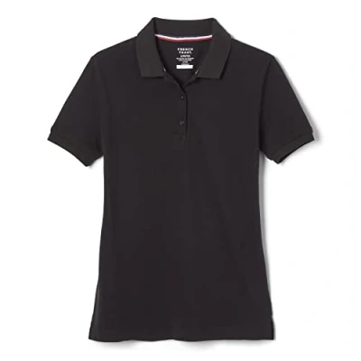 French Toast Women's Juniors' Cotton Blend Stretch Pique Short Sleeve Polo Shirt, Black, Small