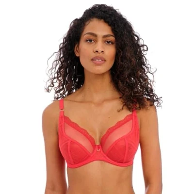Freya Women's Fatale Underwire Plunge Bra, Sheer, Chilli Red, 36DD