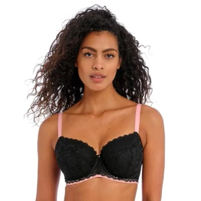 Freya Women's Offbeat Underwire Padded Half Cup Bra, Black, 34FF