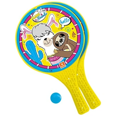 Pure fun - you can play llama friends with friends on the beach, park or garden - from 3 years OFFICIAL WORLD PRODUCT - The two plastic beach tennis rackets feature a design inspired by Llama Friends Sturdy handles – the handles of the beach rackets have a stable hold thanks to the plastic material – approx. 40 x 40 x 16 cm Ball included - you will never lose the rubber ball thanks to its bright yellow colour - floats in water - compressible Practical - with the mesh bag you can carry the set anywhere - ideal for travel, Manufacturer: Mondo