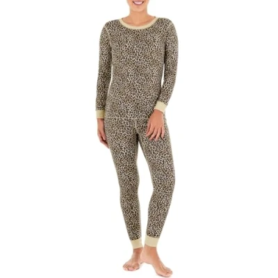 Fruit of the Loom Women's Micro Waffle Thermal Set Pajama, Animal Print, S