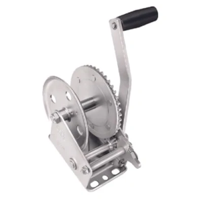 1300 lbs. Capacity crank designed to meet your most demanding drags. It features an efficient gear ratio, full-length drum bearings, oil-impregnated shaft bushings, and an 8" comfort grip handle for ease of starting. High carbon steel gears for excellent strength and long term durability. Stamped carbon steel frame provides rigidity, important for aligning gears and longer life. For use with a 79mm rope up to 30 feet long or 2 inch straps up to 20 feet long.